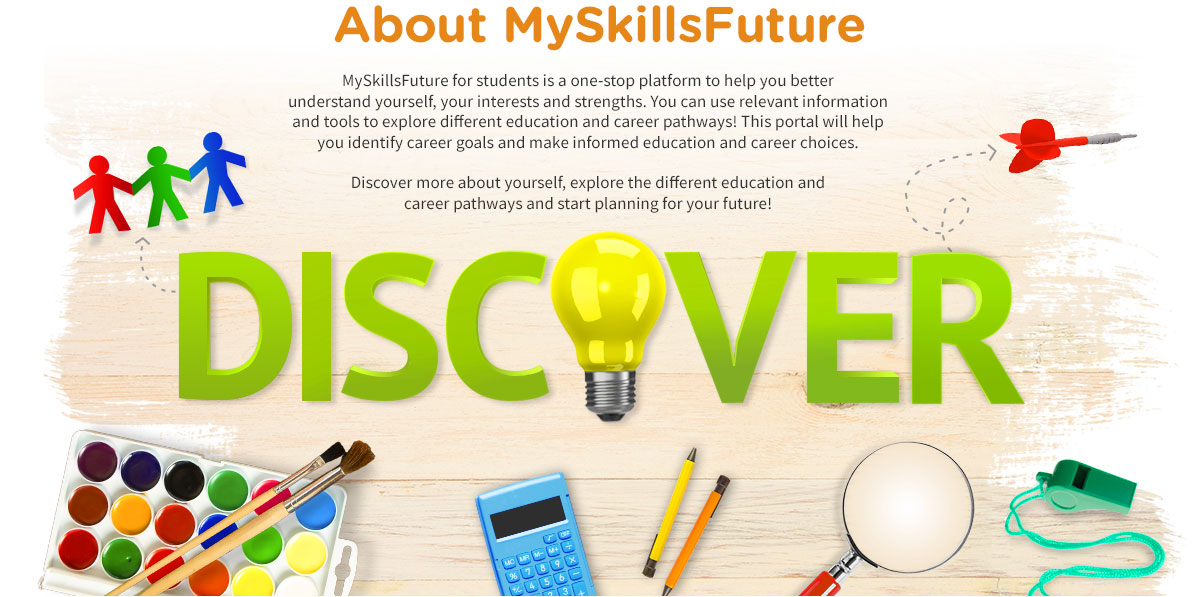 MySkillsFuture for Students is a one-stop platform to help you better understand yourself, your interests and strengths. You can use relevant information and tools to explore different educational and career pathways! This portal will help you identify career goals and making informed education and career choices. Discover more about yourself, explore the different education and career pathways and start planning for your future!