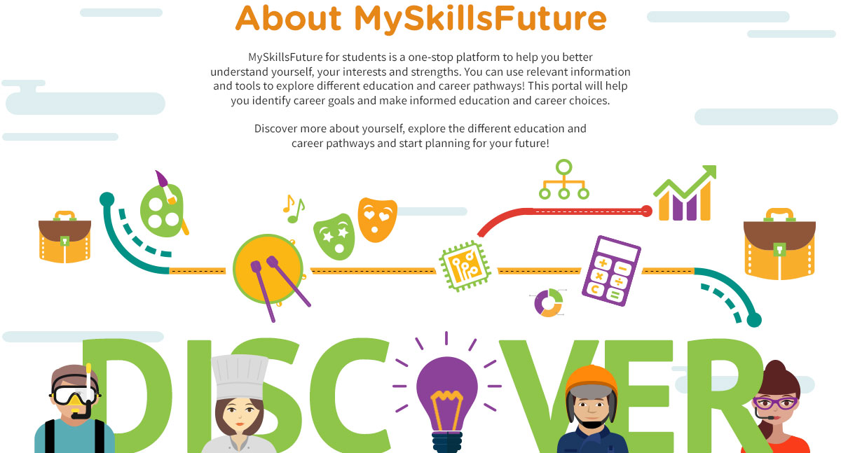 MySkillsFuture for Students is a one-stop platform to help you better understand yourself, your interests and strengths. You can use relevant information and tools to explore different educational and career pathways! This portal will help you identify career goals and making informed education and career choices.Discover more about yourself, explore the different education and career pathways and start planning for your future!